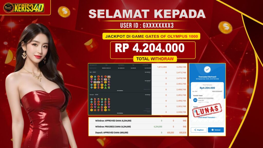 Setiap hari, member KERIS34D berhasil meraih jackpot besar dari berbagai provider slot ternama yang kami sediakan, seperti Pragmatic Play, Habanero, PG Soft, dan masih banyak lagi. Kami secara rutin menampilkan bukti screenshot atau rekapan kemenangan yang berhasil diraih, mulai dari kemenangan ratusan ribu hingga puluhan juta rupiah. Semua slip kemenangan ini kami hadirkan untuk membuktikan bahwa di KERIS34D, peluang menang itu nyata