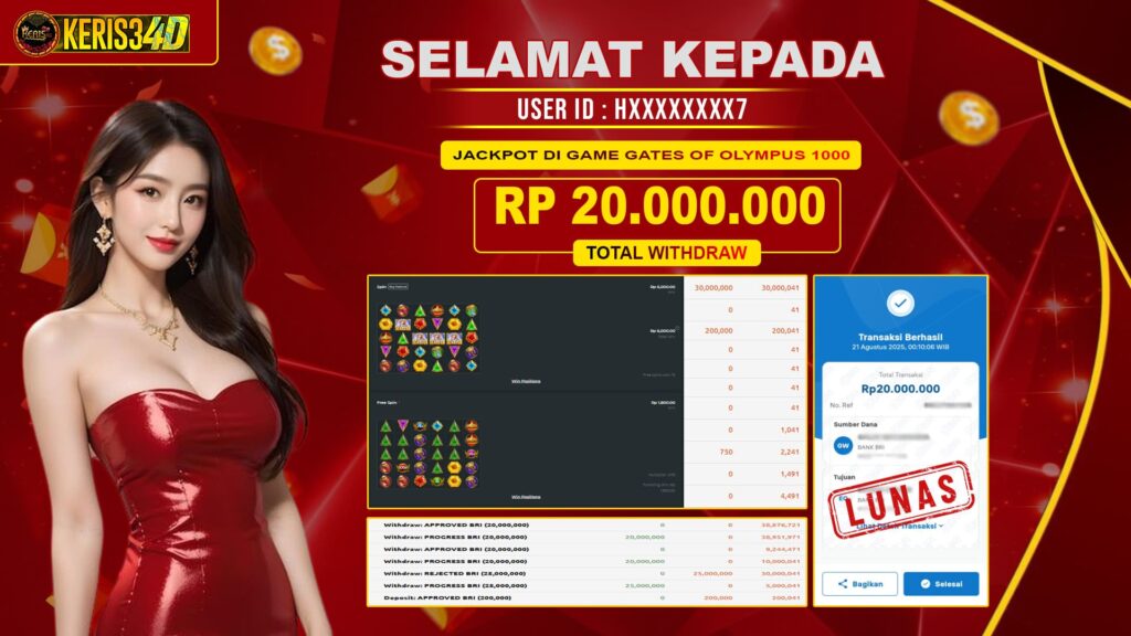 Setiap hari, member KERIS34D berhasil meraih jackpot besar dari berbagai provider slot ternama yang kami sediakan, seperti Pragmatic Play, Habanero, PG Soft, dan masih banyak lagi. Kami secara rutin menampilkan bukti screenshot atau rekapan kemenangan yang berhasil diraih, mulai dari kemenangan ratusan ribu hingga puluhan juta rupiah. Semua slip kemenangan ini kami hadirkan untuk membuktikan bahwa di KERIS34D, peluang menang itu nyata