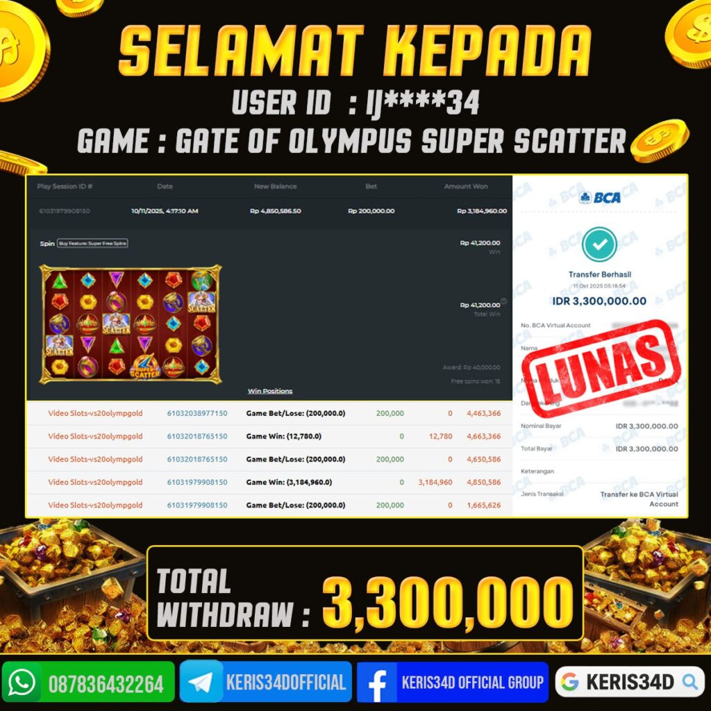JACKPOT SLOT GACOR GATES OF OLYMPUS SUPER SCATTER 11 OKTOBER 2025, Jackpot Slot Gacor, Kemenangan Slot, Bukti Kemenangan Slot, Kemenangan PRAGMATIC PLAY, Menang Slot online, Slot Gacor, Situs Aman Terpercaya, WD Berapapun Pasti DI Bayar Tuntas, Maxwin Slot Online.