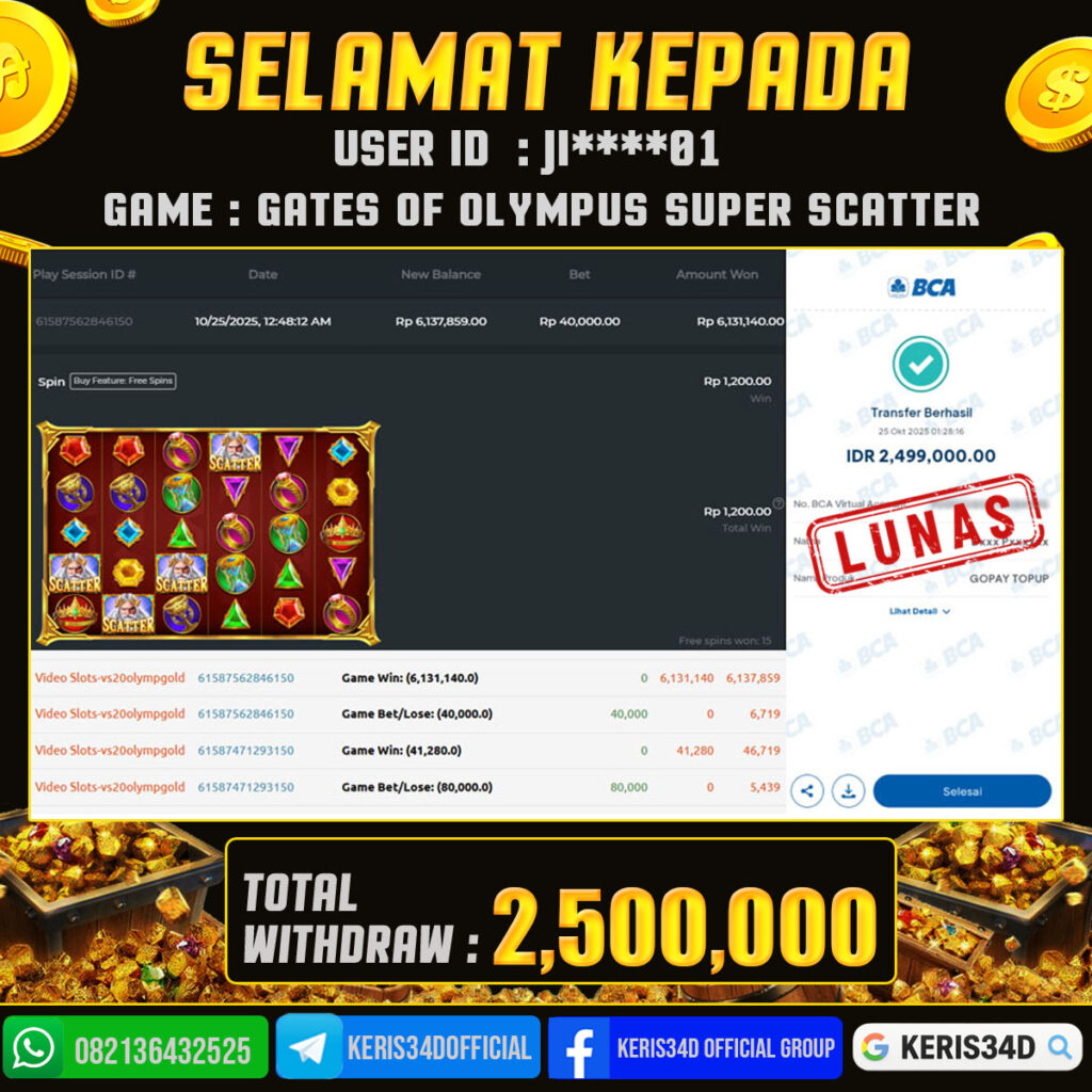JACKPOT SLOT GACOR GATES OF OLYMPUS SUPER SCATTER 25 OKTOBER 2025, Jackpot Slot Gacor, Kemenangan Slot, Bukti Kemenangan Slot, Kemenangan PRAGMATIC PLAY, Menang Slot online, Slot Gacor, Situs Aman Terpercaya, WD Berapapun Pasti DI Bayar Tuntas, Maxwin Slot Online.