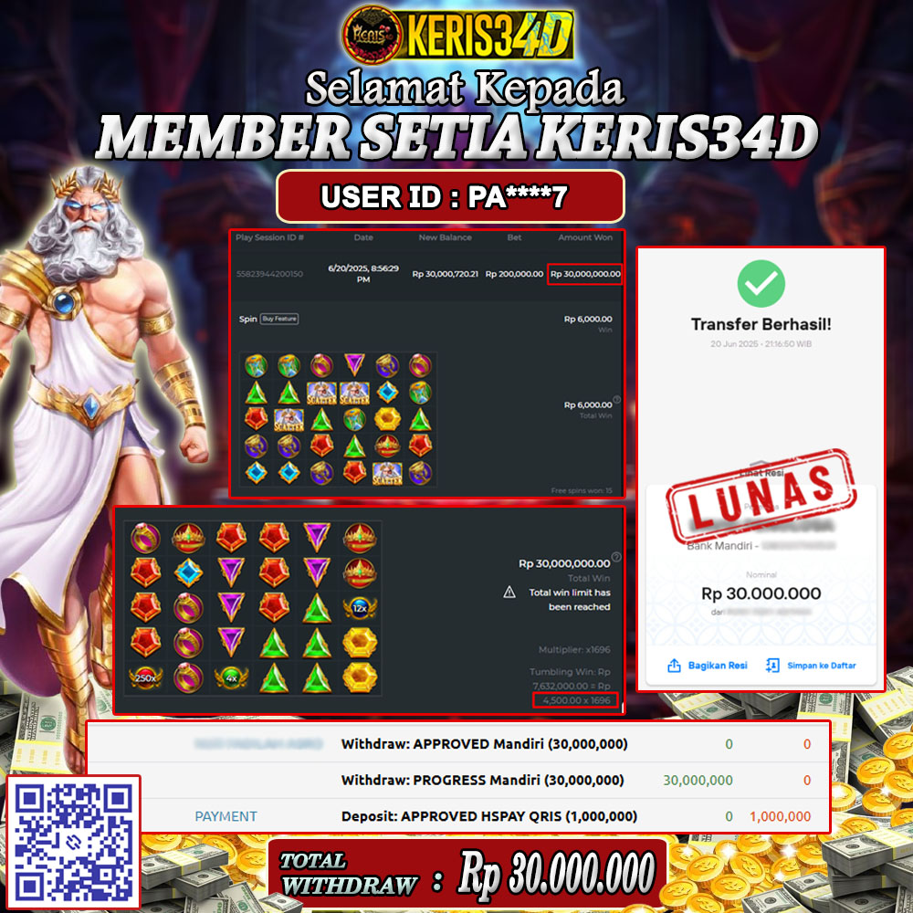 TOTAL KEMENANGAN : Rp. 30.000.000