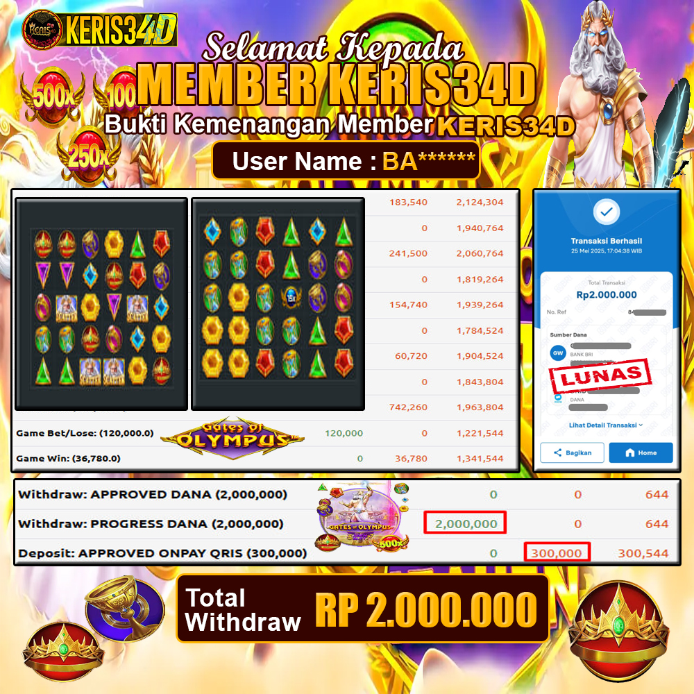 SSetiap hari, member KERIS34D berhasil meraih jackpot besar dari berbagai provider slot ternama yang kami sediakan, seperti Pragmatic Play, Habanero, PG Soft, dan masih banyak lagi. Kami secara rutin menampilkan bukti screenshot atau rekapan kemenangan yang berhasil diraih, mulai dari kemenangan ratusan ribu hingga puluhan juta rupiah. Semua slip kemenangan ini kami hadirkan untuk membuktikan bahwa di KERIS34D peluang menang itu nyata