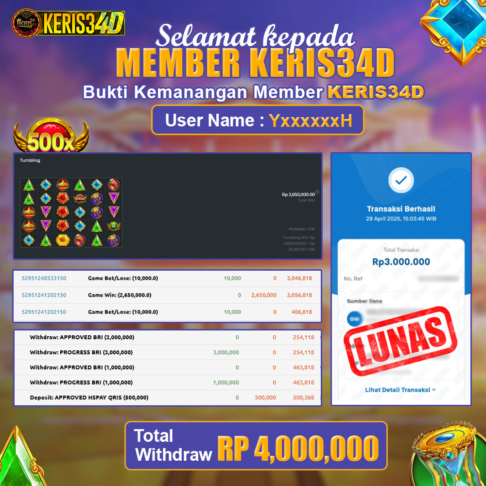 TOTAL KEMENANGAN : Rp. 4.000.000