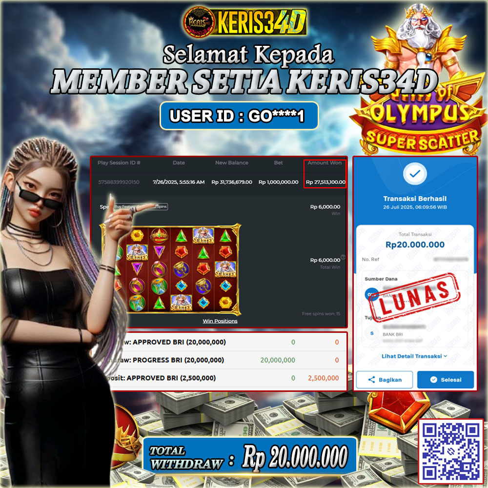 Setiap hari, member KERIS34D berhasil meraih jackpot besar dari berbagai provider slot ternama yang kami sediakan, seperti Pragmatic Play, Habanero, PG Soft, dan masih banyak lagi. Kami secara rutin menampilkan bukti screenshot atau rekapan kemenangan yang berhasil diraih, mulai dari kemenangan ratusan ribu hingga puluhan juta rupiah. Semua slip kemenangan ini kami hadirkan untuk membuktikan bahwa di KERIS34D peluang menang itu nyata