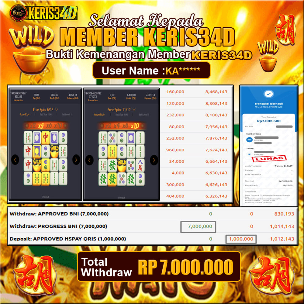 TOTAL KEMENANGAN : Rp. 7.000.000