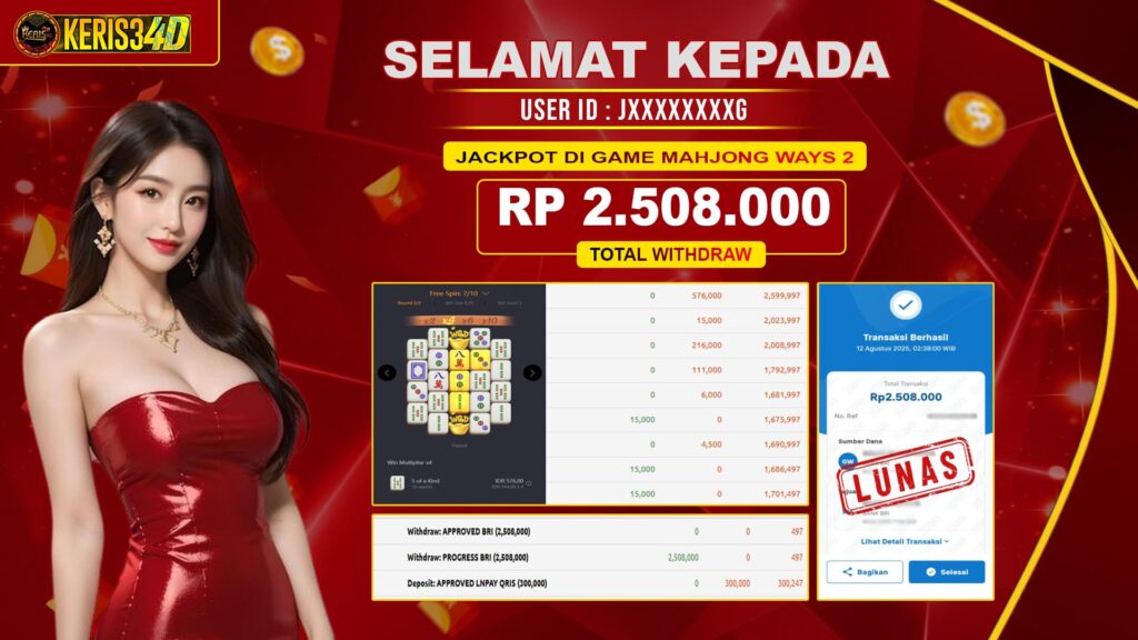 Setiap hari, member KERIS34D berhasil meraih jackpot besar dari berbagai provider slot ternama yang kami sediakan, seperti Pragmatic Play, Habanero, PG Soft, dan masih banyak lagi. Kami secara rutin menampilkan bukti screenshot atau rekapan kemenangan yang berhasil diraih, mulai dari kemenangan ratusan ribu hingga puluhan juta rupiah. Semua slip kemenangan ini kami hadirkan untuk membuktikan bahwa di KERIS34D, peluang menang itu nyata
