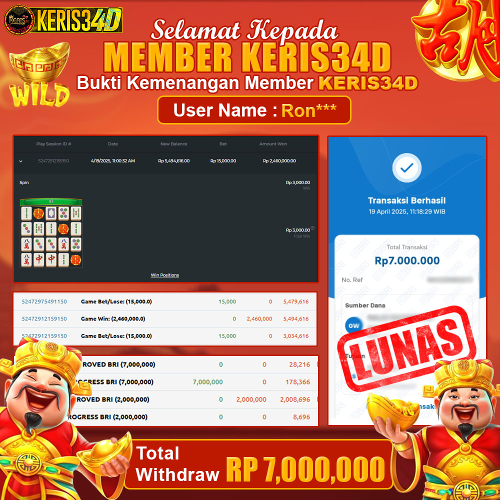TOTAL KEMENANGAN : Rp. 7.000.000,