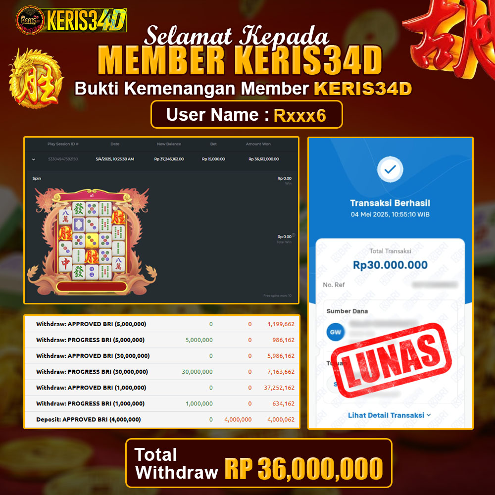 Setiap hari, member KERIS34D berhasil meraih jackpot besar dari berbagai provider slot ternama yang kami sediakan, seperti Pragmatic Play, Habanero, PG Soft, dan masih banyak lagi. Kami secara rutin menampilkan bukti screenshot atau rekapan kemenangan yang berhasil diraih, mulai dari kemenangan ratusan ribu hingga puluhan juta rupiah. Semua slip kemenangan ini kami hadirkan untuk membuktikan bahwa di KERIS34D, peluang menang itu nyata
