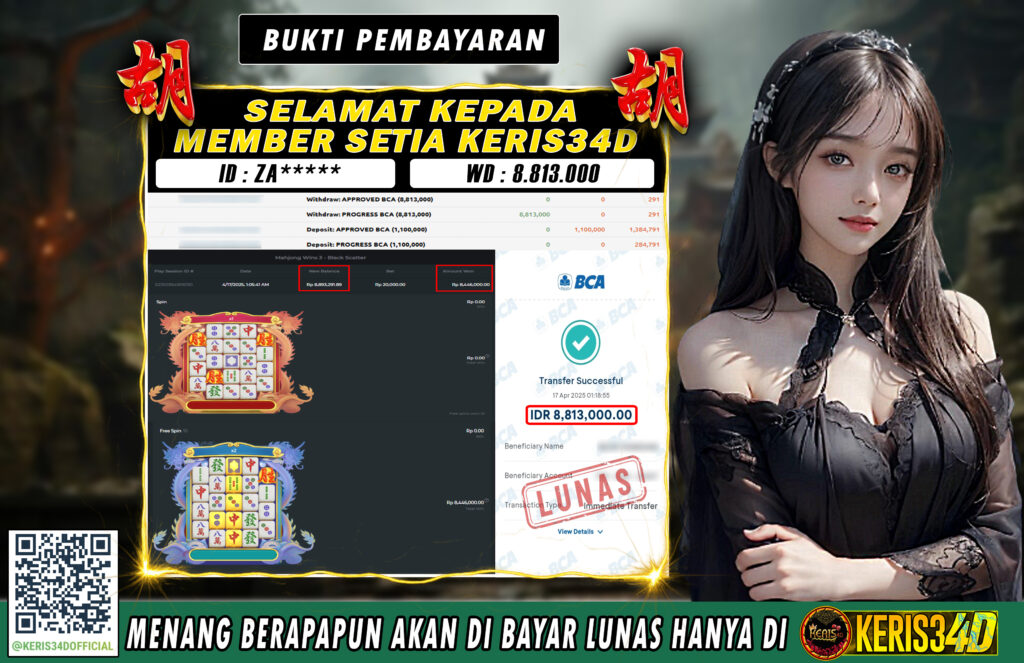 Setiap hari, member KERIS34D berhasil meraih jackpot besar dari berbagai provider slot ternama yang kami sediakan, seperti Pragmatic Play, Habanero, PG Soft, dan masih banyak lagi. Kami secara rutin menampilkan bukti screenshot atau rekapan kemenangan yang berhasil diraih, mulai dari kemenangan ratusan ribu hingga puluhan juta rupiah. Semua slip kemenangan ini kami hadirkan untuk membuktikan bahwa di KERIS34D, peluang menang itu nyata