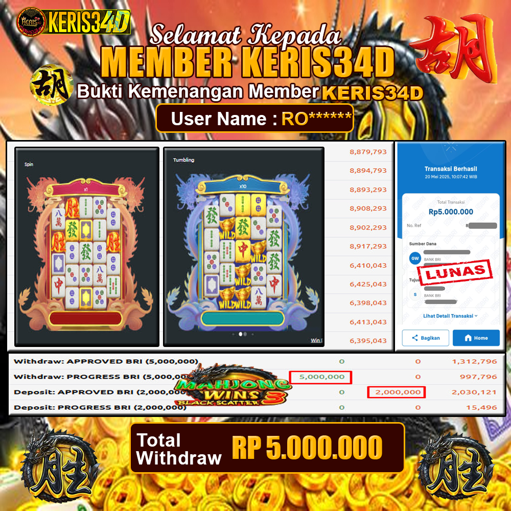 JACKPOT SLOT GACOR MAIN MAHJONG WINS 3 – BLACK SCATTER 20 MEI 2025, Jackpot Slot Gacor, Kemenangan Slot, Bukti Kemenangan Slot, Kemenangan PRAGMATIC PLAY, Menang Slot online, Slot Gacor, Situs Aman Terpercaya, WD Berapapun Pasti DI Bayar Tuntas, Maxwin Slot Online.