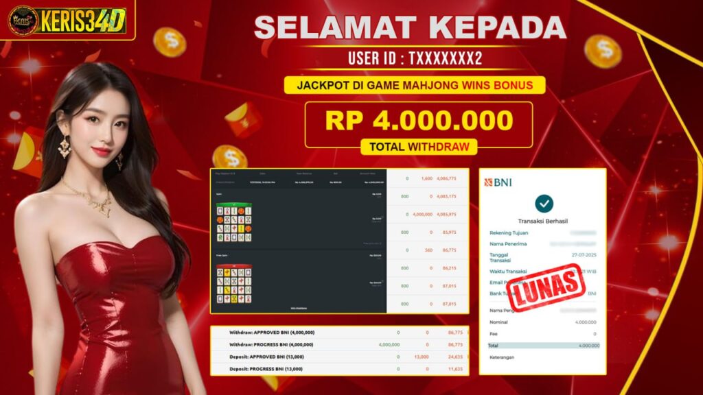 KERIS34D dikenal sebagai situs terpercaya yang selalu menghadirkan pengalaman bermain slot online yang aman, fair, dan berlisensi resmi. Di sini, kami tidak hanya sekadar memberikan janji, tapi bukti nyata berupa slip kemenangan yang dapat Anda lihat secara langsung.