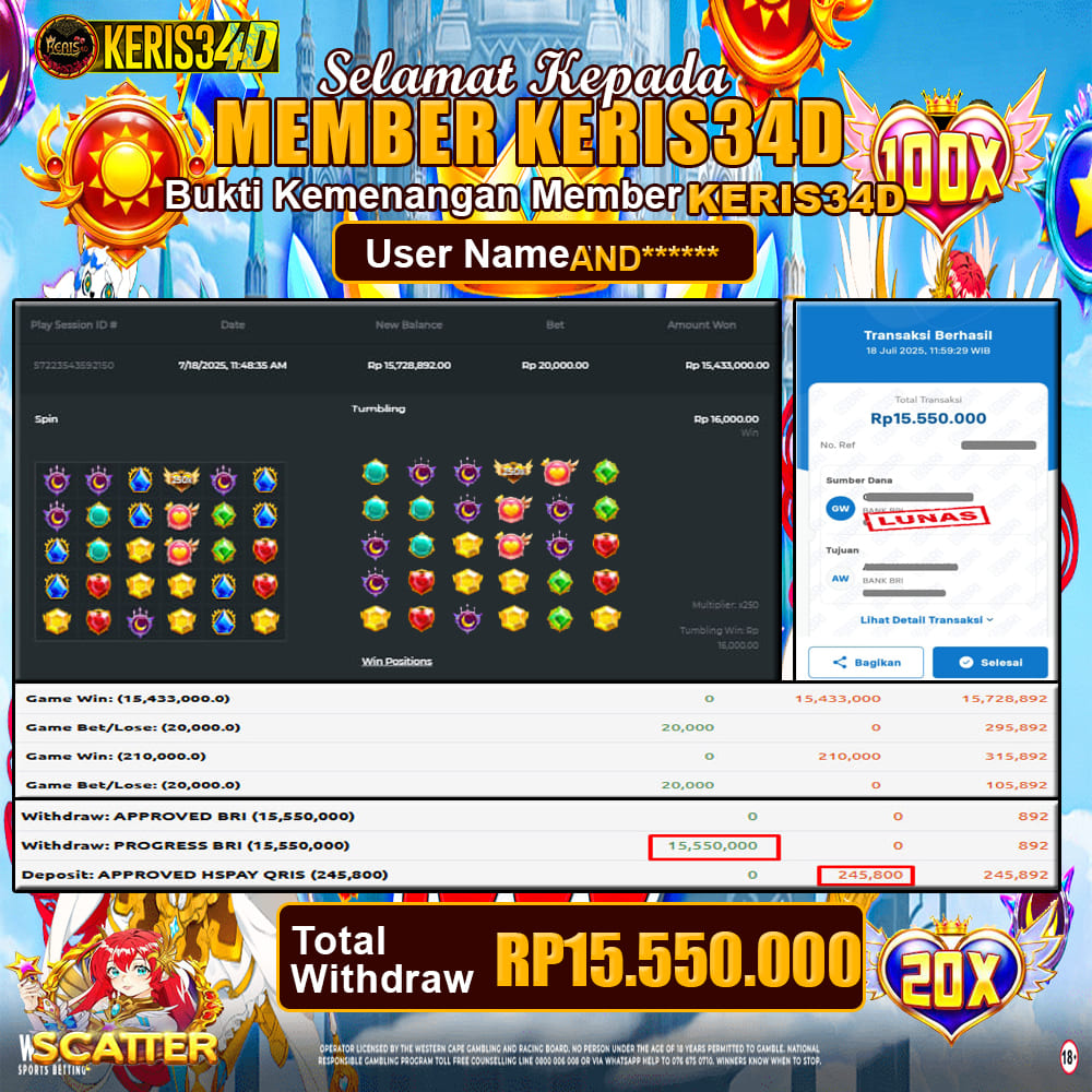 Setiap hari, member KERIS34D berhasil meraih jackpot besar dari berbagai provider slot ternama yang kami sediakan, seperti Pragmatic Play, Habanero, PG Soft, dan masih banyak lagi. Kami secara rutin menampilkan bukti screenshot atau rekapan kemenangan yang berhasil diraih, mulai dari kemenangan ratusan ribu hingga puluhan juta rupiah. Semua slip kemenangan ini kami hadirkan untuk membuktikan bahwa di KERIS34D, peluang menang itu nyata