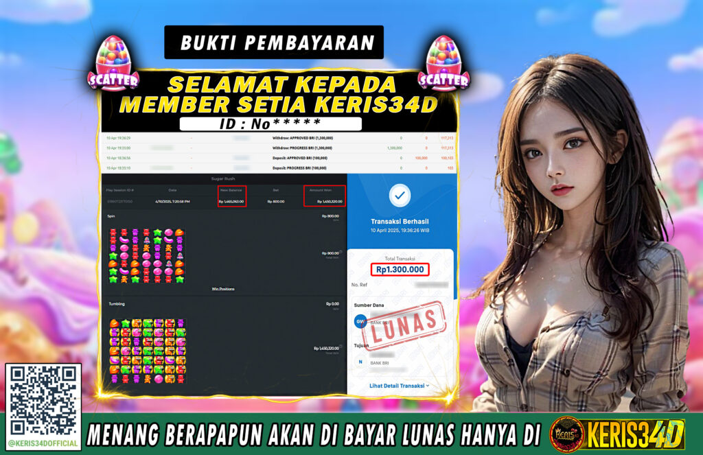 Setiap hari, member KERIS34D berhasil meraih jackpot besar dari berbagai provider slot ternama yang kami sediakan, seperti Pragmatic Play, Habanero, PG Soft, dan masih banyak lagi. Kami secara rutin menampilkan bukti screenshot atau rekapan kemenangan yang berhasil diraih, mulai dari kemenangan ratusan ribu hingga puluhan juta rupiah. Semua slip kemenangan ini kami hadirkan untuk membuktikan bahwa di KERIS34D, peluang menang itu nyata