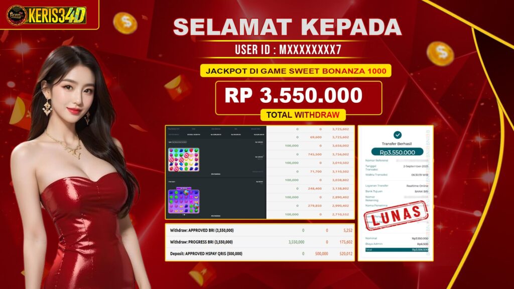 Setiap hari, member KERIS34D berhasil meraih jackpot besar dari berbagai provider slot ternama yang kami sediakan, seperti Pragmatic Play, Habanero, PG Soft, dan masih banyak lagi. Kami secara rutin menampilkan bukti screenshot atau rekapan kemenangan yang berhasil diraih, mulai dari kemenangan ratusan ribu hingga puluhan juta rupiah. Semua slip kemenangan ini kami hadirkan untuk membuktikan bahwa di KERIS34D, peluang menang itu nyata
