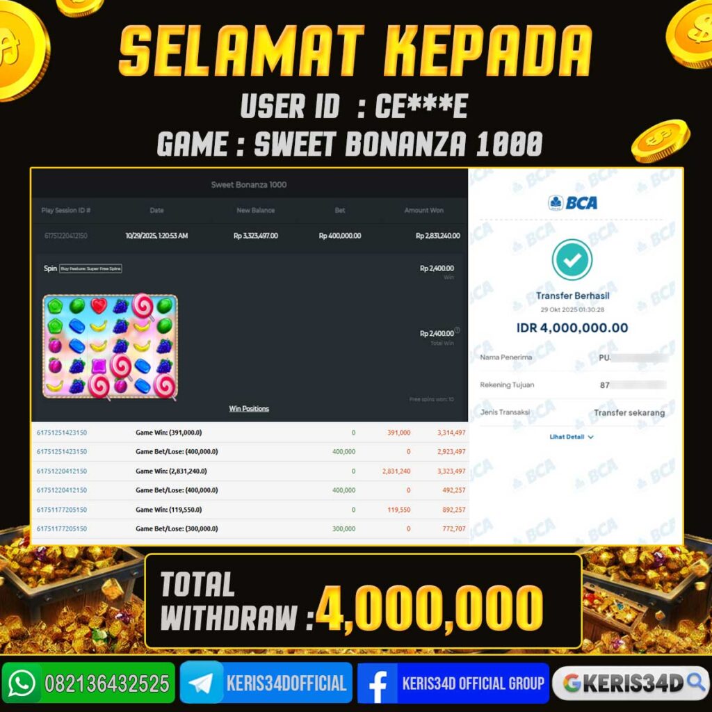 KERIS34D dikenal sebagai situs terpercaya yang selalu menghadirkan pengalaman bermain slot online yang aman, fair, dan berlisensi resmi. Di sini, kami tidak hanya sekadar memberikan janji, tapi bukti nyata berupa slip kemenangan yang dapat Anda lihat secara langsung.