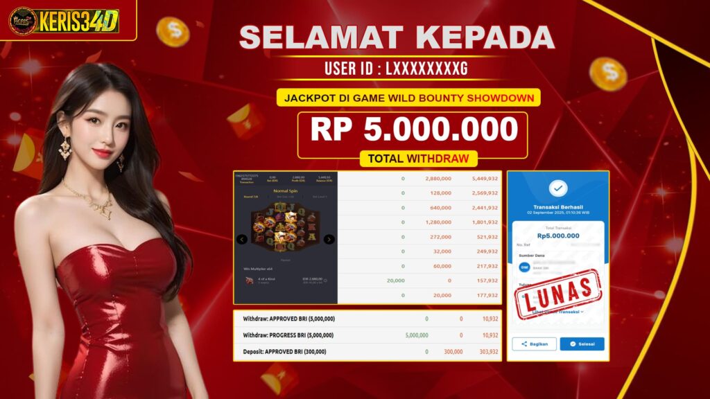 Setiap hari, member KERIS34D berhasil meraih jackpot besar dari berbagai provider slot ternama yang kami sediakan, seperti Pragmatic Play, Habanero, PG Soft, dan masih banyak lagi. Kami secara rutin menampilkan bukti screenshot atau rekapan kemenangan yang berhasil diraih, mulai dari kemenangan ratusan ribu hingga puluhan juta rupiah. Semua slip kemenangan ini kami hadirkan untuk membuktikan bahwa di KERIS34D, peluang menang itu nyata