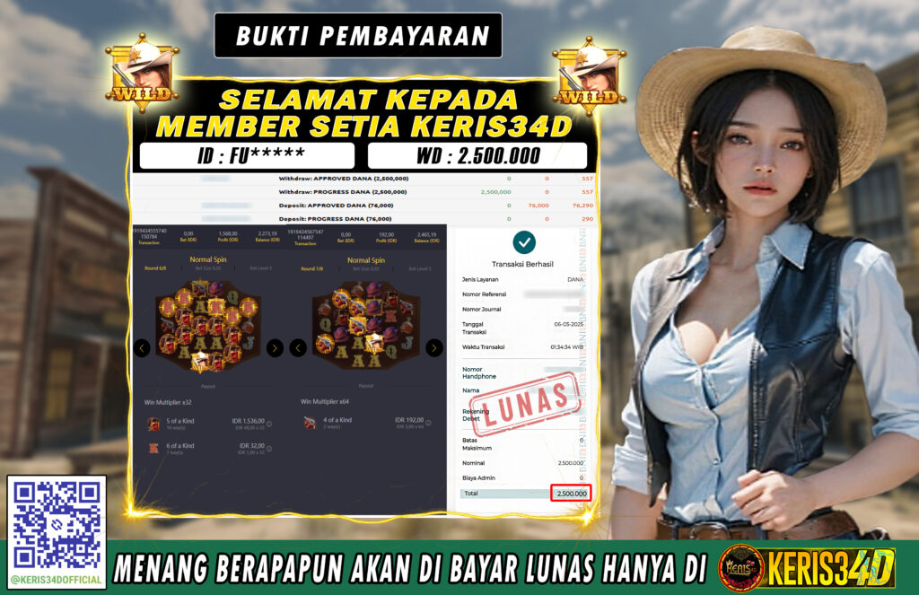 Setiap hari, member KERIS34D berhasil meraih jackpot besar dari berbagai provider slot ternama yang kami sediakan, seperti Pragmatic Play, Habanero, PG Soft, dan masih banyak lagi. Kami secara rutin menampilkan bukti screenshot atau rekapan kemenangan yang berhasil diraih, mulai dari kemenangan ratusan ribu hingga puluhan juta rupiah. Semua slip kemenangan ini kami hadirkan untuk membuktikan bahwa di KERIS34D, peluang menang itu nyata