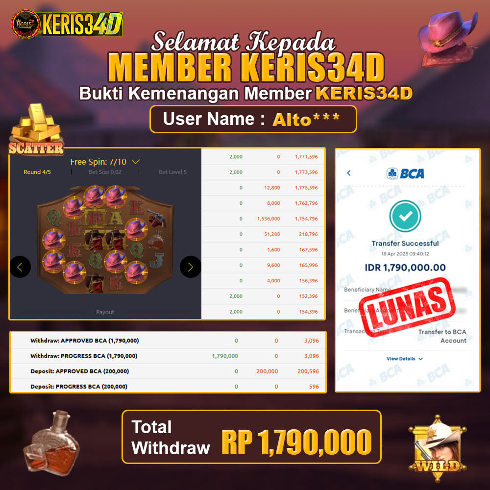 Setiap hari, member KERIS34D berhasil meraih jackpot besar dari berbagai provider slot ternama yang kami sediakan, seperti Pragmatic Play, Habanero, PG Soft, dan masih banyak lagi. Kami secara rutin menampilkan bukti screenshot atau rekapan kemenangan yang berhasil diraih, mulai dari kemenangan ratusan ribu hingga puluhan juta rupiah. Semua slip kemenangan ini kami hadirkan untuk membuktikan bahwa di KERIS34D, peluang menang itu nyata