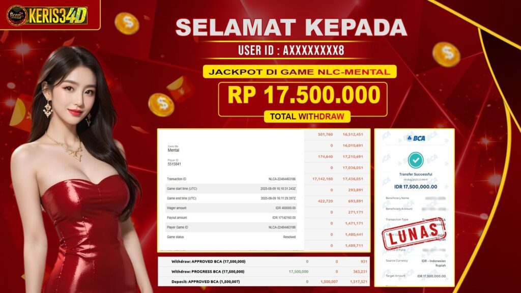 KERIS34D dikenal sebagai situs terpercaya yang selalu menghadirkan pengalaman bermain slot online yang aman, fair, dan berlisensi resmi. Di sini, kami tidak hanya sekadar memberikan janji, tapi bukti nyata berupa slip kemenangan yang dapat Anda lihat secara langsung.