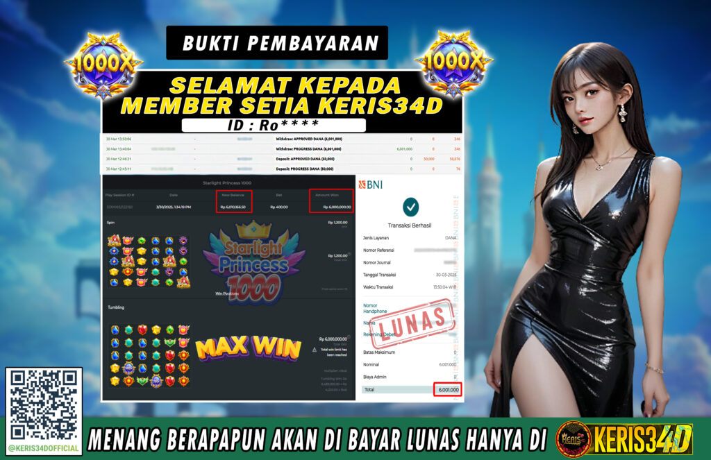 KERIS34D dikenal sebagai situs terpercaya yang selalu menghadirkan pengalaman bermain slot online yang aman, fair, dan berlisensi resmi. Di sini, kami tidak hanya sekadar memberikan janji, tapi bukti nyata berupa slip kemenangan yang dapat Anda lihat secara langsung.