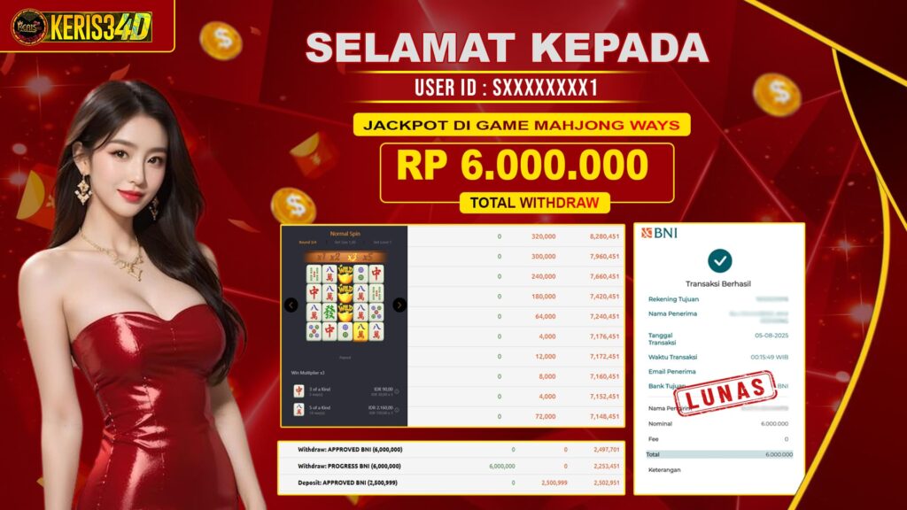 Setiap hari, member KERIS34D berhasil meraih jackpot besar dari berbagai provider slot ternama yang kami sediakan, seperti Pragmatic Play, Habanero, PG Soft, dan masih banyak lagi. Kami secara rutin menampilkan bukti screenshot atau rekapan kemenangan yang berhasil diraih, mulai dari kemenangan ratusan ribu hingga puluhan juta rupiah. Semua slip kemenangan ini kami hadirkan untuk membuktikan bahwa di KERIS34D, peluang menang itu nyata
