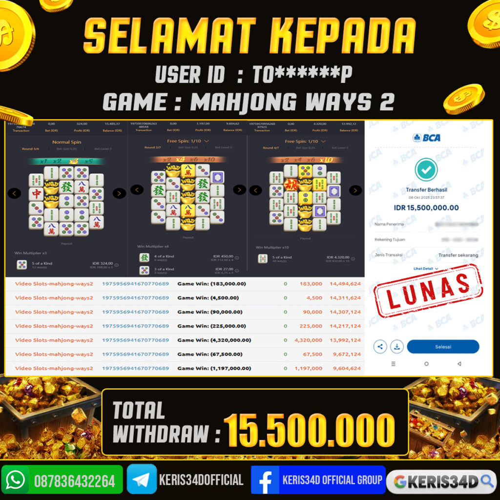 TOTAL KEMENANGAN : Rp. 15.500.000