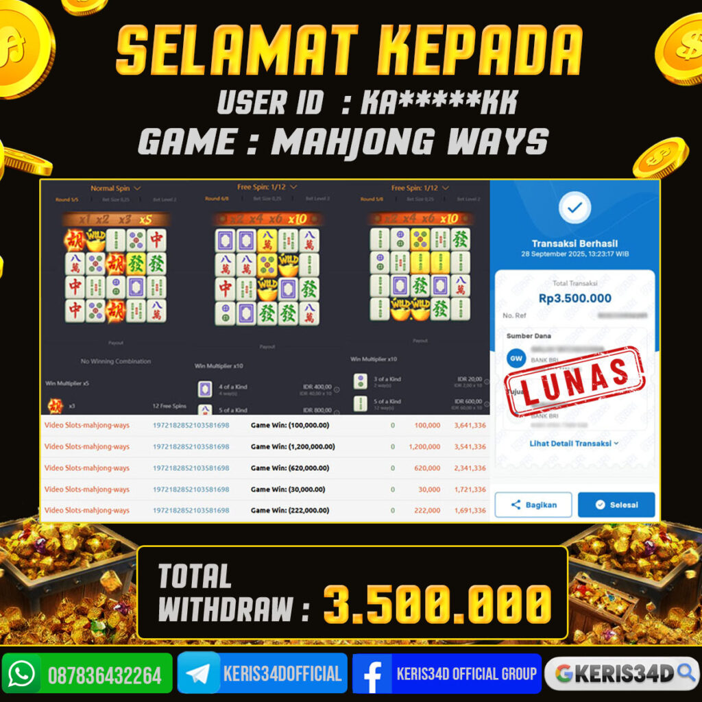 JACKPOT SLOT GACOR MAIN MAHJONG WAYS 28 SEPTEMBER 2025, Jackpot Slot Gacor, Kemenangan Slot, Bukti Kemenangan Slot, Kemenangan PGSOFT, Menang Slot online, Slot Gacor, Situs Aman Terpercaya, WD Berapapun Pasti DI Bayar Tuntas, Maxwin Slot Online.